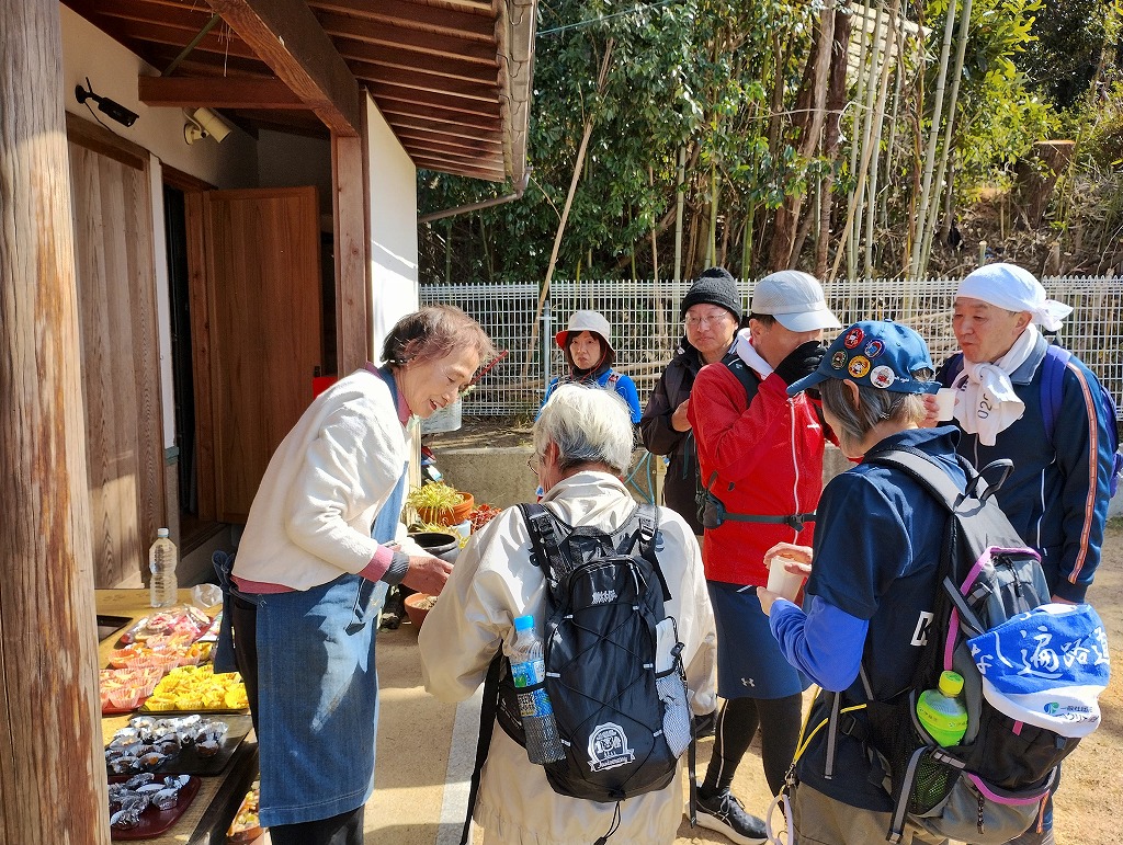 第10回に引き続きのご参加。寒さの残る十九丁休憩所にて、飲み物やお菓子でお接待をしてくださいました。今回のイベントに限らず、いつも車の入れない山道を通り、お接待品を運んでくださっています。この場所のお接待に助けられ、励まされたお遍路さんが多くいます。 「景子ちゃんの接待所」で検索していただくと、このお接待所の背景について知ることができますので、ぜひご覧ください。