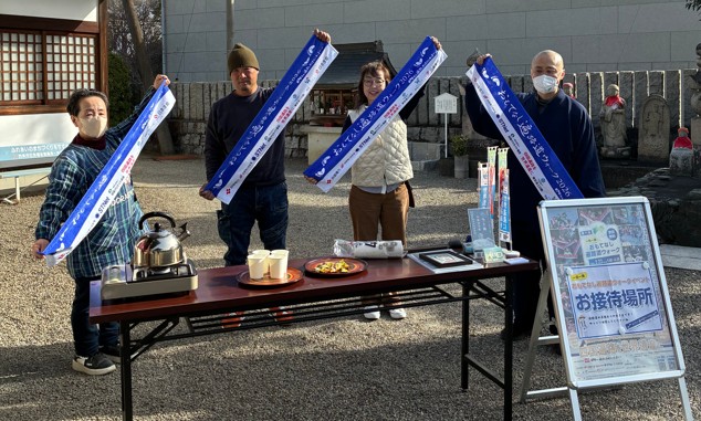 第8回からのご参加。甘酒・お茶・ココア・コーヒー・などの温かい飲み物やお菓子類などをお接待して下さいました。分かりやすい看板もありがとうございます。