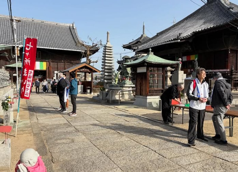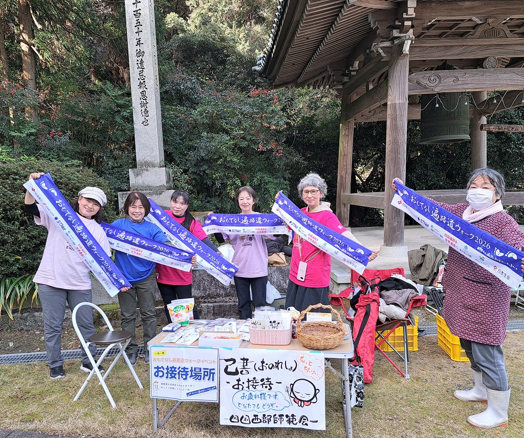 第10回に引き続き、62番札所宝寿寺のみなさまが、お茶や飴などでお接待して下さいました。参加者をあたたかく迎えて下さり、ありがとうございました。