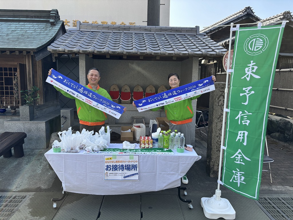 第9回からのご参加。飲み物などでお接待して下さいました。おもてなしステーションにもご協力いただいています。東予信用金庫作成の遍路地図は営業店窓口、愛媛県東予地区のお寺、市役所などで受け取る事ができます。