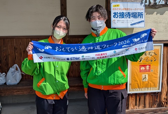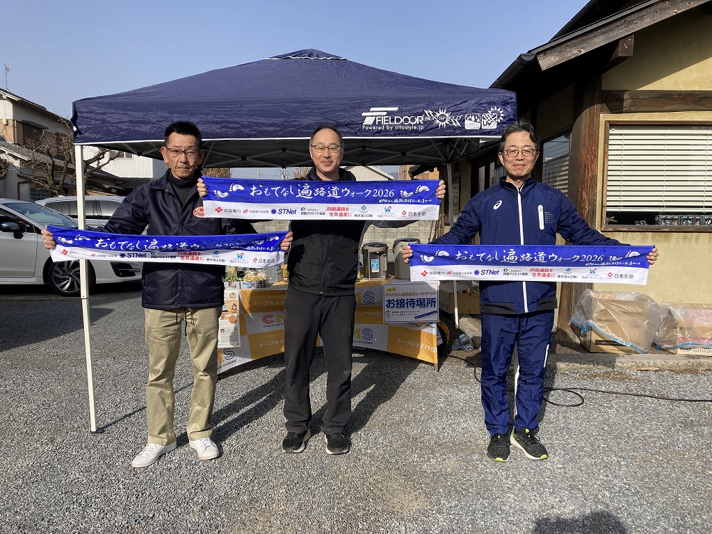 毎回お接待にご協力いただいています。「遍路道点検の参加者様に「金粉入りのおめでたいお茶ですね~」と喜んでいただいた事とチームの集合写真の撮影に協力できた事がよかったです。」普段からおもてなしステーションとして、お遍路さんにお接待されています。