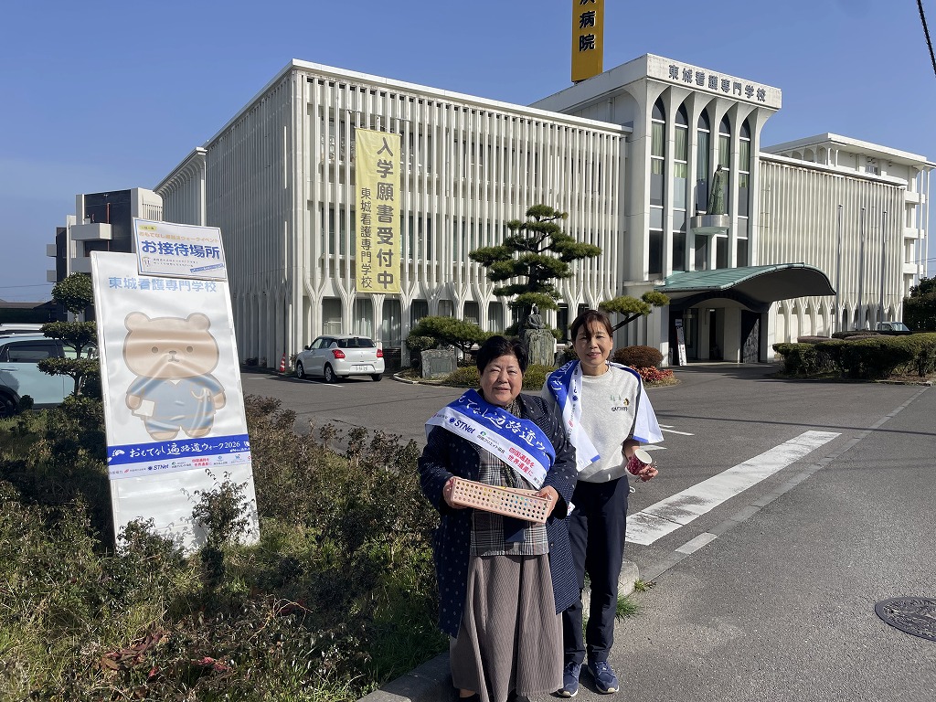 東城看護専門学校にて、トイレの案内、お菓子とお茶・コーヒーなどをお接待用意して下さいました。