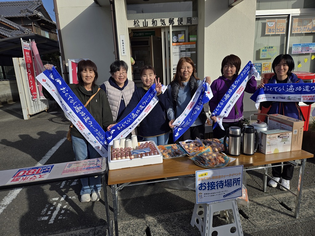 松山和気郵便局でお菓子や飲み物などをお接待して下さいました。「たくさんの方が喜んでいただき、また、来年もしてみたいと思いました。」