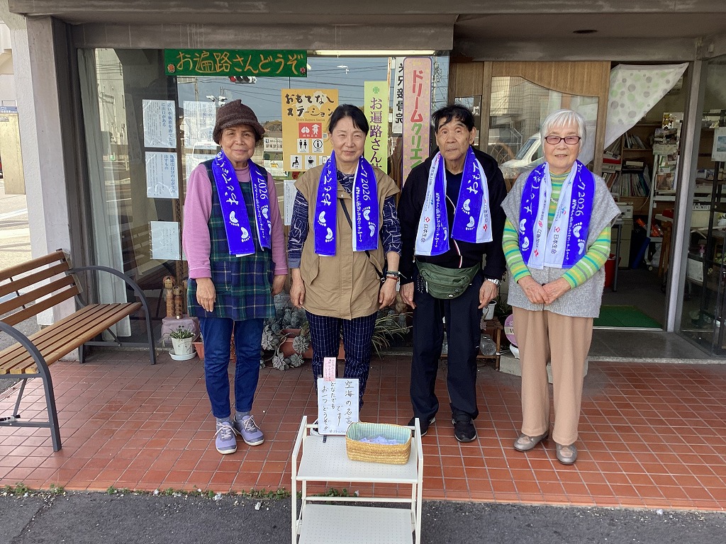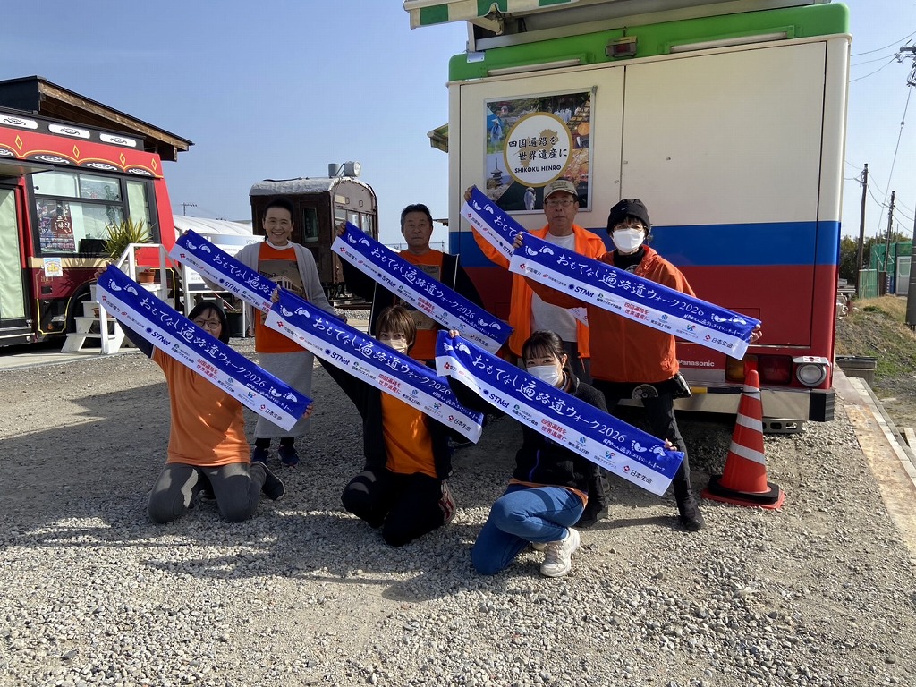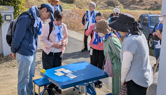 毎回、点検でご参加いただいています。今回はお接待でもご協力いただき、春らしい雛飾りで迎えてくれました。普段からおもてなしステーションとして、お遍路さんにお接待されています。