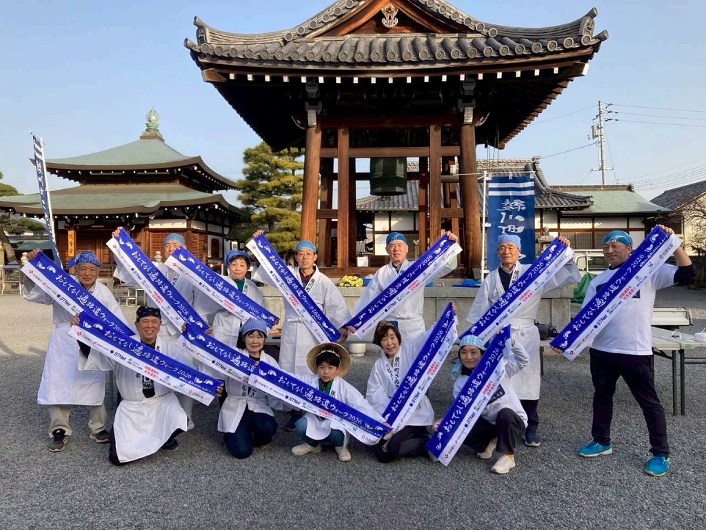 第9回からのご参加。70番札所本山寺でお接待して下さいました。「豊中町の郷土料理「肉もっそ」と「温かいお茶」と「笑顔」でお接待しました!遍路道点検の方やお遍路さん、新潟から来られている方、台湾からの観光の方等、思いがけないお接待に大変喜んでいただきました。」