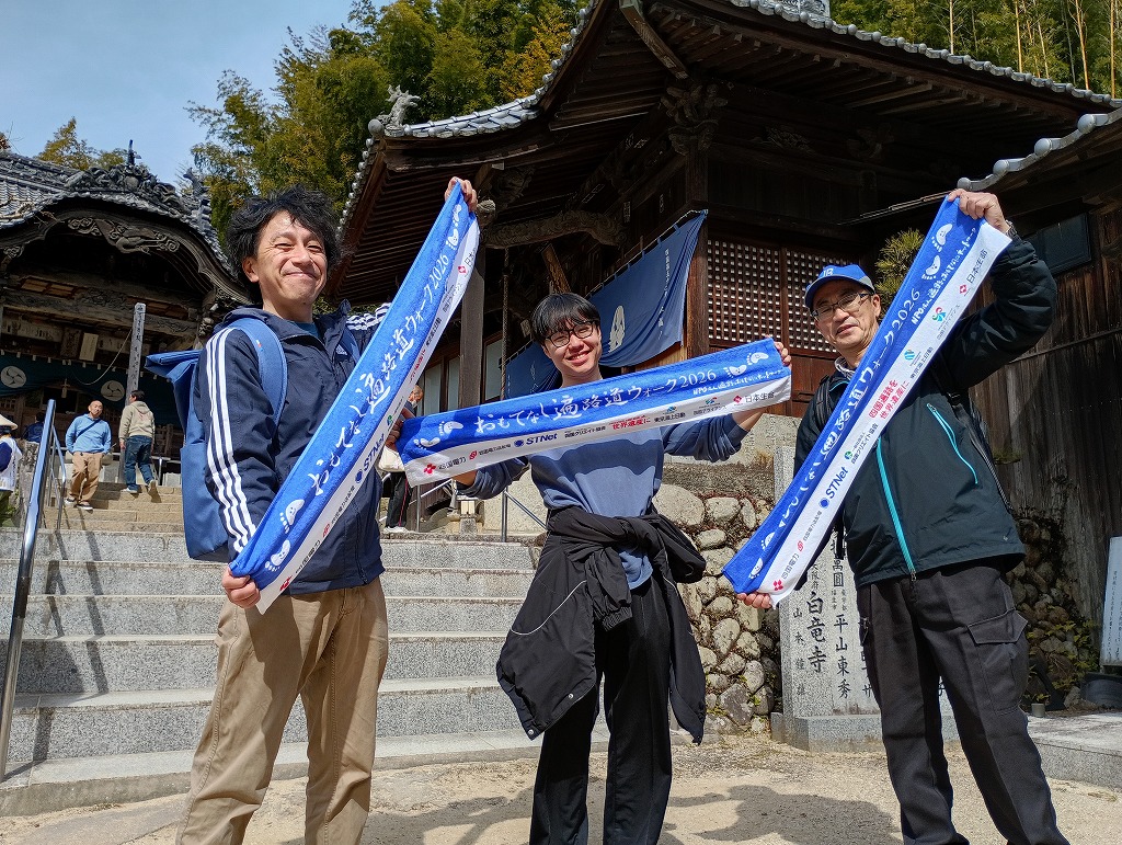 遍路道を歩くイベント「トレッキング・ザ・空海あいなん」を年1回開催しています。9月頃から募集開始です。ぜひご参加ください。