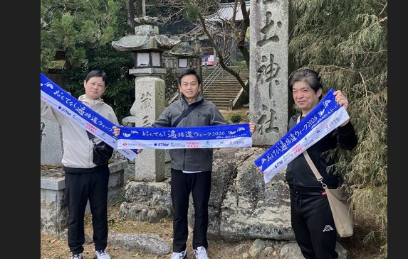 浄土寺での出発式には中村愛媛県知事、四国遍路世界遺産登録推進協議会長井会長、日本郵便四国支社紀井支社長らが参加されました。