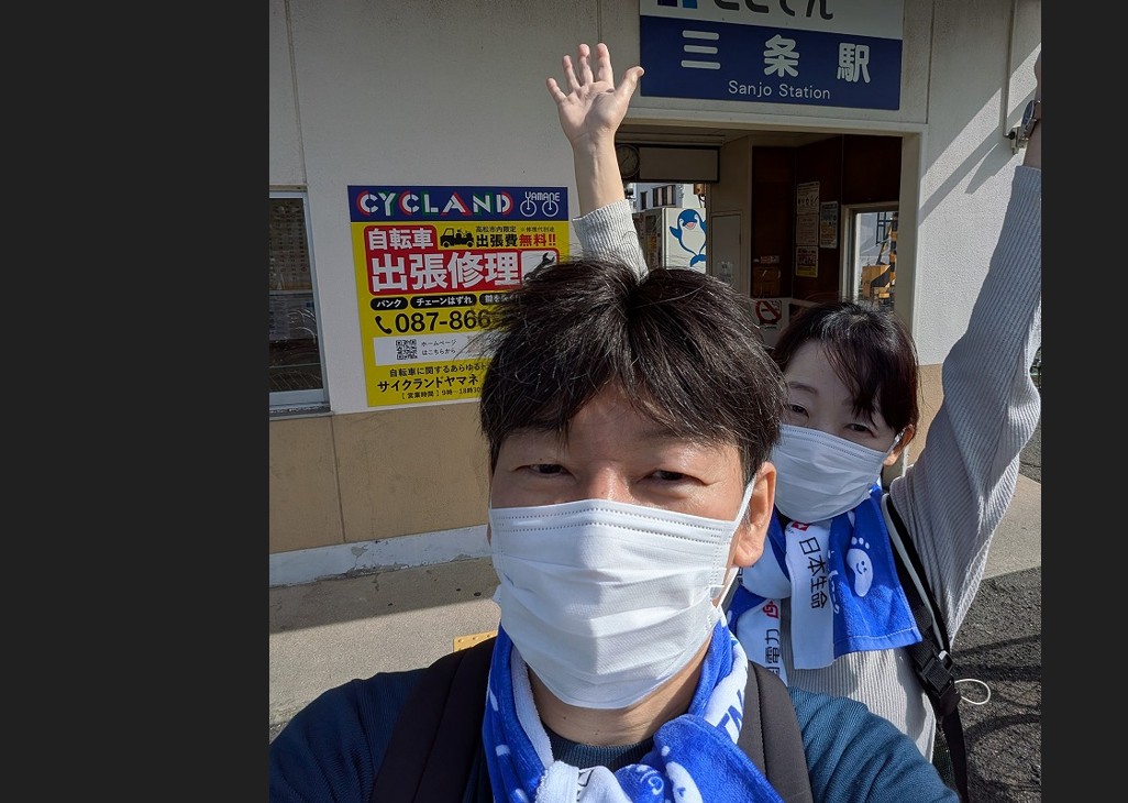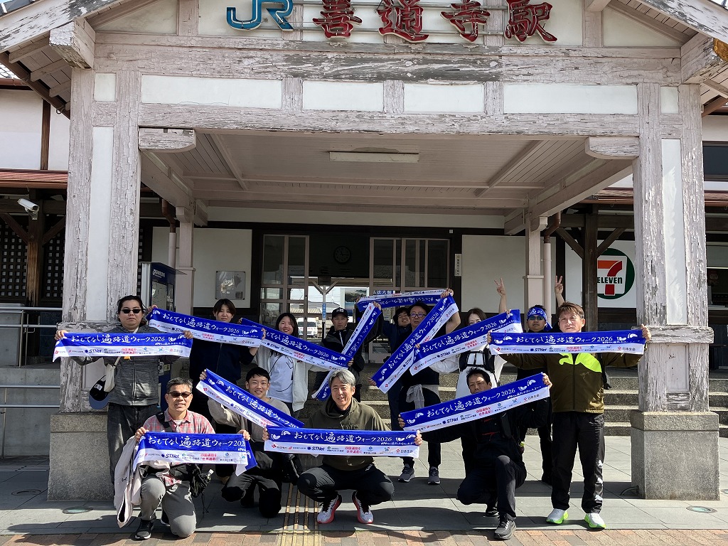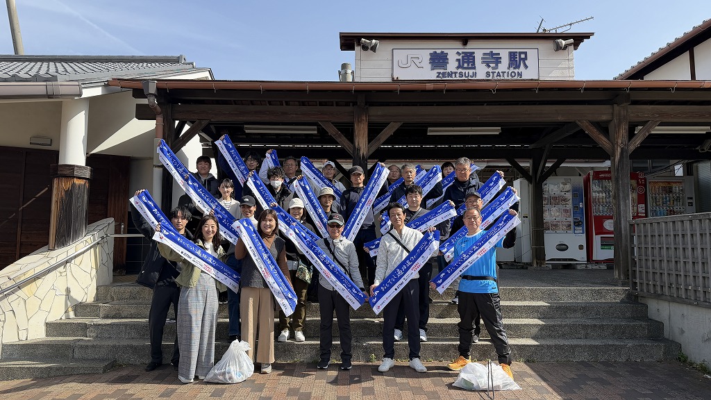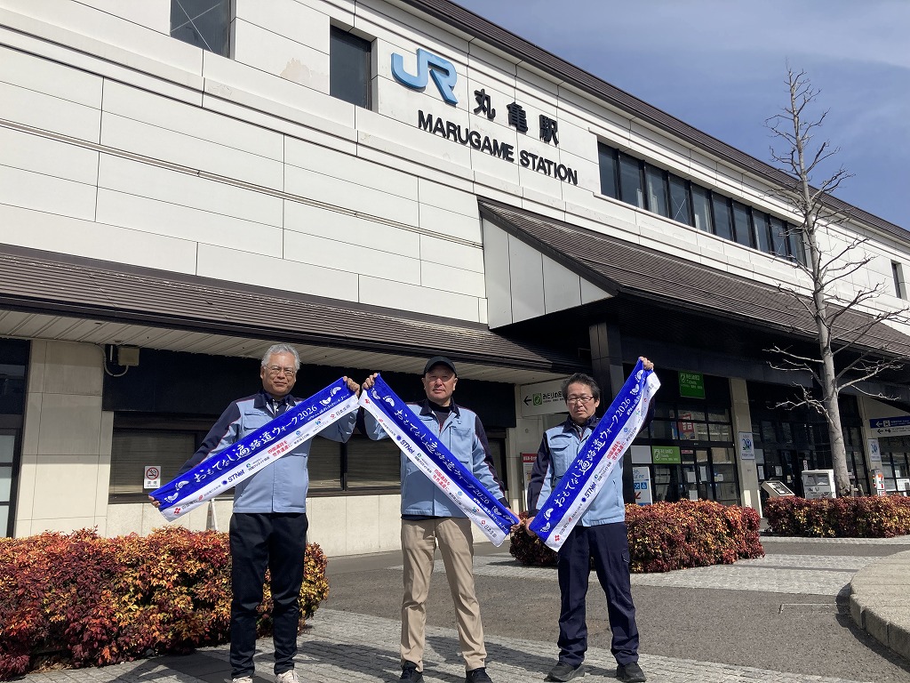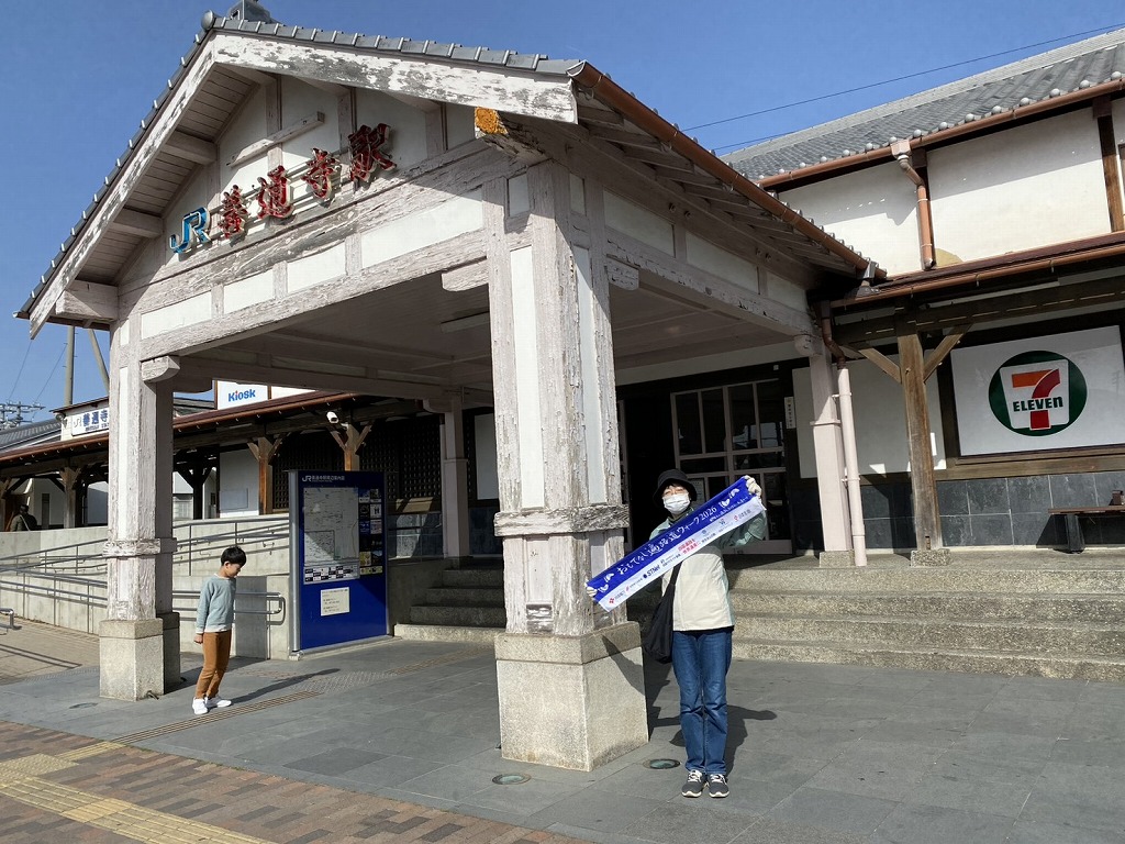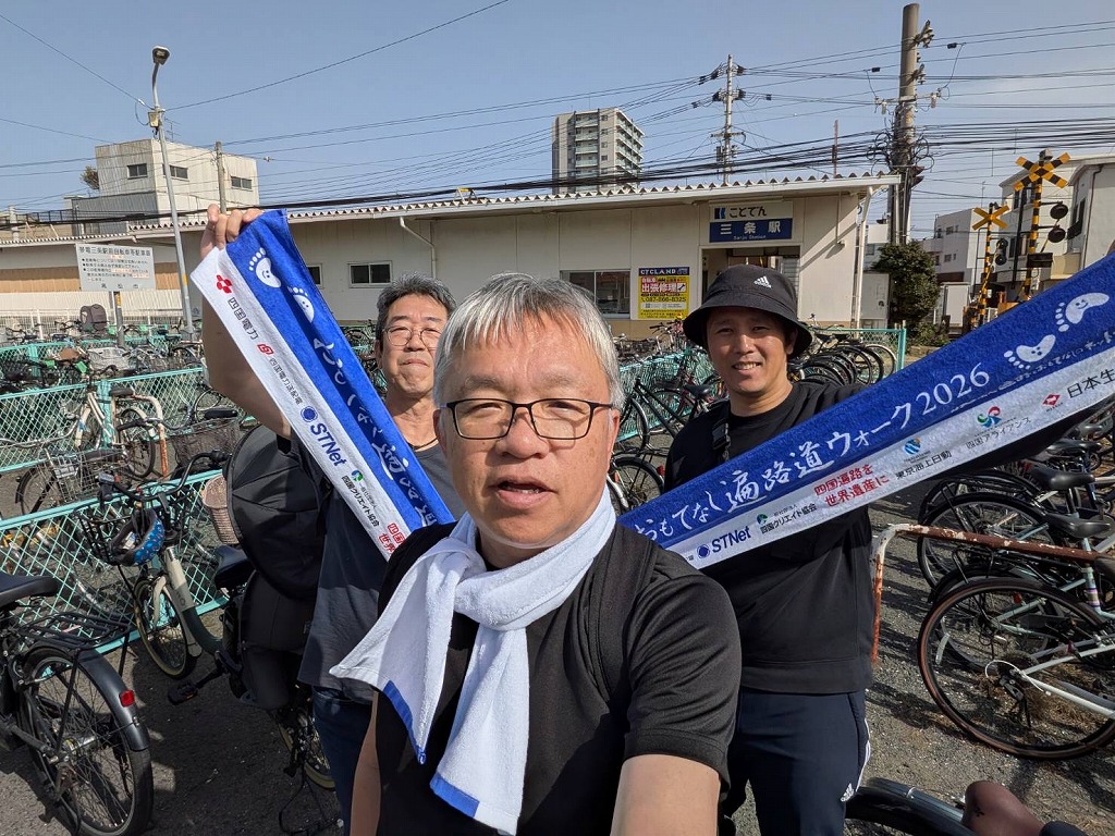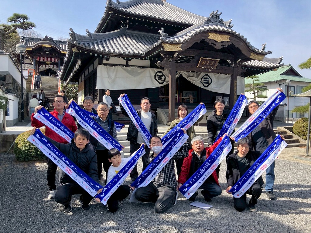 出発式には池田香川県知事、辻村善通寺市長、総本山善通寺 菅法主、田村四国運輸局長、豊口四国地方整備局長、吉田四国経済産業局長、一日四国運輸局長STU48・信濃宙花さん 当NPO半井理事長らが参加しました。